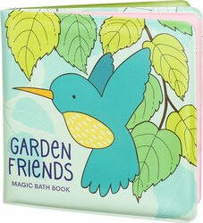 Mäkké stránky sú vodeodolné a sú plné roztomilých zvieratiek, ktoré deti môžu stretnúť na záhrade alebo na lúke. Farby kúpacej knižky vyniknú pri kontakte s vodou. Kúzelnú knižku je možné vyfarbovať aj mimo vane mokrým štetcom.