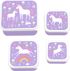 A Little Lovely Company - sada štyroch krabičiek na desiatu - jednorožci a dúha