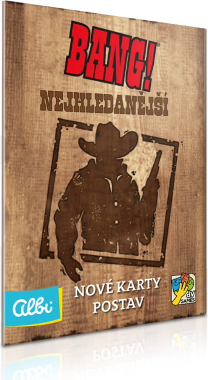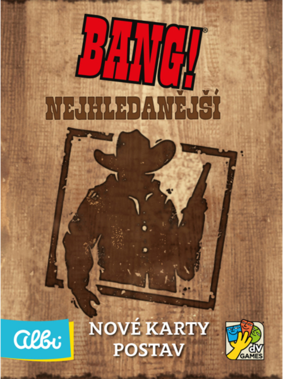 Bang! Nejhledanější je mini rozšírenie pre kartovú hru Bang!, ktoré obsahuje  5 nových postáv a 4 prázdne karty na dotvorenie (2 herné karty a 2 karty postáv).