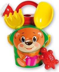 Kýblik priemer 13 cm, výška 11 cm, kanvičku 0,5 l, sitko, lopatku, hrabličky a tvorítko v tvare korytnačky.