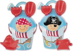 6dielna sada na piesok, vyrobená z kvalitných plastov v Taliansku.Obsahuje: vedierko, kanvičku 0,5 l, sitko, lopatku, hrabličky a tematické vodítko.
