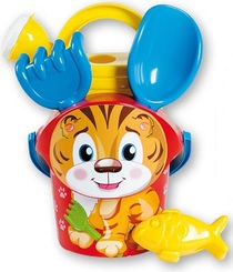 Kýblik priemer 13 cm, výška 11 cm, kanvičku 0,5 l, sitko, lopatku, hrabličky a tvorítko v tvare rybičky.