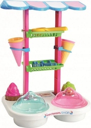 - Sada obsahuje: Stánok s dvoma odkladacími poličkami a dvoma držiakmi zmrzlinových kornútov, 4 kornútkami na zmrzlinu, 4 lyžičky, kopčekovač na zmrzlinu, 2 čiapočky zmrzlín, 2 muffinkovej základne, 2 priehľadné veká v tvare pohára.