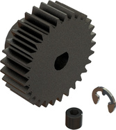Tuningový diel pre RC modely áut Arrma 3S 4WD Bigrock, Granite, Senton, Typhon: pastorok 29T 0.8M Safe-D5. Otvor pre hriadeľ s plôškou v tvare D zaistí pevné spojenie aj keď sa uvoľní pastorok.