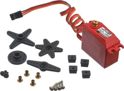 Balenie obsahuje servo, sadu pák (hviezdicová D = 27 mm, obojstranná D = 33 mm, krížová D = 33 mm, kruhová D = 17 mm), 4x silentblok s kovovou vložkou, 4x montážny skrutka, 1x skrutka pre upevnenie páky.