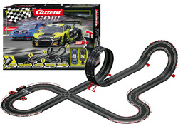 Autodráha Carrera GO!!! dlhá 6,3 m s autami Audi R8 LMS GT3 a Lamborghini Huracán GT3, obsahuje looping, križovatku, rovinky, zákruty, kolmú stenu, diel s počítadlom kolies a ďalšie diely. Môžete si zostaviť ďalšie rôzne trate podľa svojej fantázie.