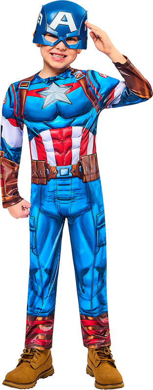Ako skutočný superhrdina je známy pre svoj charakteristický červeno-bielo-modrý oblek a štít ozdobený hviezdou.