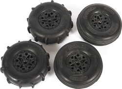 Náhradný diel pre RC modely áut Axial Yeti Jr.™ Can-Am® Maverick 1:18.: predné kolesá s pneumatikami ST28 Razor a zadné kolesá s pneumatikami Paddle, do piesku a sypkých terénov, unášač 12mm.
