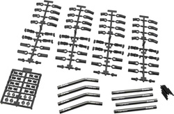 Upgradujte vaše auto Axial Wraith alebo AX10™ Deadbolt, diely Axial: AX30797 Vzpery Stage 1 hliník, s koncovkami. Sada obsahuje 4 hliníkové ohnuté horné a 4 spodné tyče z hliníka s priemerom 7mm. c Balenie je sada guľových čapov.