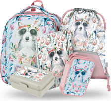 BAAGL SADA 5 Shelly Medvedík čistotný: aktovka, peračník, vrecko, box na desiatu, dosky