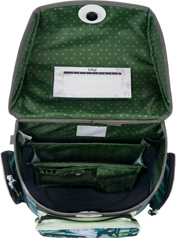 • Vnútri aktovky je priehľadná kapsa s rozvrhom a vnútorný organizér umožňujúci rovnomerné rozloženie hmotnosti.