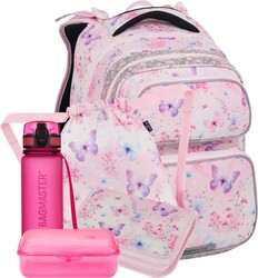 S ružovým dvojkomorovým batohom s trblietavým dizajnom pôjdu všetky dievčatká do školy s úsmevom. Vďaka presnému chrbtovému systému s bedrovým pásom a hmotnosti pod kilogram je vhodný aj pre menšie deti. Batoh je ideálny pre prvú, druhú a tretiu triedu. Školákov a rodičov očaria aj bezpečné reflexné prvky, bočné vrecká na fľašu a ďalšie vychytávky. Vybavenie pre malú princeznú dopĺňa peračník, látková taška a zladená súprava na občerstvenie.