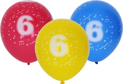 Balónik nafukovací 30cm - sada 5ks, s číslom 6
