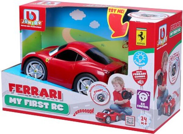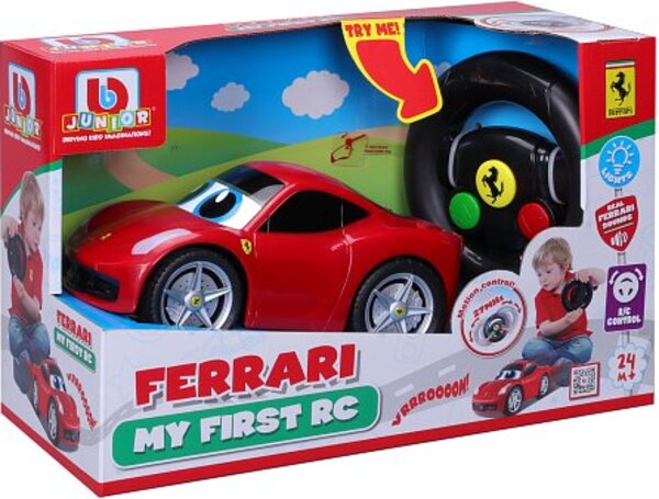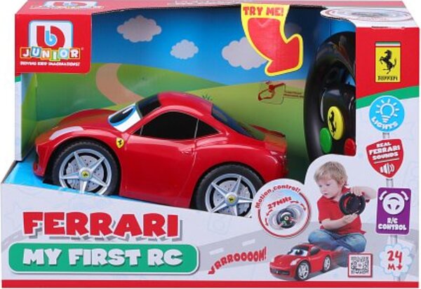 Diaľkovo ovládané auto zo série My First RC v oficiálnej licencii značky Ferrari. Ovládač má pohybový senzor pre ovládanie vľavo a vpravo pohybom ruky, tlačidlá pre jazdu vpred a vzad a tlačidlo realistických zvukov klaksónu. Autíčku svietia predné aj zadné svetlá.
