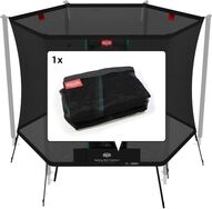 Trampolíny sú neodolateľné. Ich výhodou je tiež to, že si na nich udržujete kondíciu, trénujete obratnosť a rovnováhu.Trampolína radu Champion. Šedá farba ochranného goliera, galvanizované rámy vonku i vo vnútri, pružiny majú tvar dvojitého kužeľa, pružné lôžka prepúšťa vodu.Ochranná sieť je vyrobená z pozinkovanej ocele a je odolná voči korózii. Zaisťuje jednoduché a bezpečné zaobchádzanie.Pre optimálnu ochranu sú všetky tyče opatrené penovými návleky. Sieť je optimálne silná a bezpečná, zároveň poskytuje dobrý výhľad.Pružiny TwinSpring GoldPružiny TwinSpring Gold sú použité u trampolín radu Champion, Grand Champion a Elite.Kvalita: Vysoký počet silných pružín (o 30% pružín viac v porovnaní so štandardnými trampolínami!) Sa vďaka novému postupu nasadzuje pri montáži oveľa ľahšie (červené oko pružiny na červenú značku na ráme). Pružiny sú navyše vybavené veľmi odolným zinkovaním, ktoré zaisťuje vynikajúce antikorózne vlastnosti.Bezpečnosť:Ššpeciálne, dlhé pružiny sú veľmi pevne a úzko vinuté. Týmto je zamedzené nepríjemnému a bolestivému priškripnutiu prsta alebo kože.Komfort: Nový systém šikmého upevnenie pružín vytvára veľkú elastickú plochu, ktorá poskytuje vynikajúce odrazové vlastnosti a zvyšuje celkový komfort skákania.Rozmery trampolíny: 470 x 310 cmVýška: 27 cmOchranný golier: šírka 39 cm, výška 3 cmPočet pružín: 112 TwinSpring GoldNosnosť: 120 kg, testované na 600 kgRozmery ochrannej siete:Priemer: 350 x 250 cmVýška: 180 cm