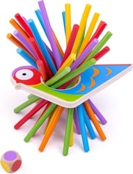 Omrzela Vás bežná mikáda, hľadáte sviežu zábavu? Vyskúšajte jeho nevšedný variant s originálne dekorovaným krúžkom, v zvlášť pestrých a pútavých farbách. Hádžte kockou a pokúste sa postupne uvoľňovať tyčinky príslušných farieb, kým neopatrnosťou nepohnete s vtáčikom, alebo inou než ťahanou tyčinkou.