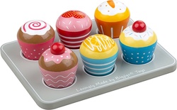 Šesť lahodných drevených muffinov s podnosom pripravených na ozdobenie akejkoľvek drevenej kuchyne, hranie sa na obchod alebo pre čajovú párty. Každý je pestro sfarbený a individuálne ozdobený. Muffiny sú pripravené na servírovanie, akonáhle sú v drevenom podstavci úhľadne zasunuté! BigJigs je veľký fanúšik zdravej výživy a aká by bola lepšia cesta učiť deti o zdravej výžive, než pomocou hračiek z nášho sortimentu?