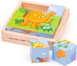 Bigjigs Toys Obrázkové kocky kubusy Dinosaury 9 kociek