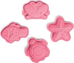 Súprava obsahuje štyri formičky: hviezdicu, kraba, rybu a korytnačku. Silikón je udržateľnou alternatívou plastu a je odolný voči teplotám a škvrnám, čo znamená, že sa na slnku neroztaví ani sa nijako nepoškodí.