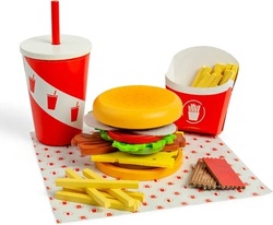 Poskladajte si vlastný hamburger s obľúbenými prísadami, dochuťte, pridajte hranolky, nápoj a je hotovo. V sade tiež nájdete krabičku na hranolky, kelímok, menu s rôznymi burgermi, obrúsky a krabičku, ak by ste si chceli obed vziať so sebou.