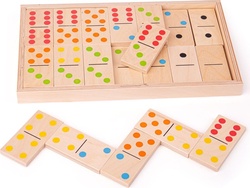 Toto pestrofarebné drevené domino Jumbo, je perfektne dimenzované pre malé ručičky, ktorým sa tak dieliky ľahko dvíhajú a umiestňujú. Hra pomáha rozvíjať obratnosť, zručnosti v súhre a koncentrácii.