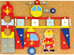 - 78 rôznych kusov drevených doštičiek a 8 kusov obrázkov z tvrdého papiera ponúka mnoho priestoru pre nápady a priestor pre rôzne obrázky na tému „hasičský zbor“.