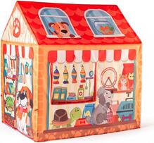 Detský stan "dom s predzáhradkou". Detský stan vyrobený z materiálu PES na vnútorné aj vonkajšie použitie, ktorý ponúka najmenším zábavu a zároveň môže byť veľmi rýchlo postavený a uložený tak, aby sa šetril priestor.