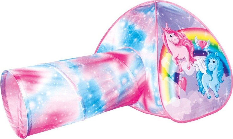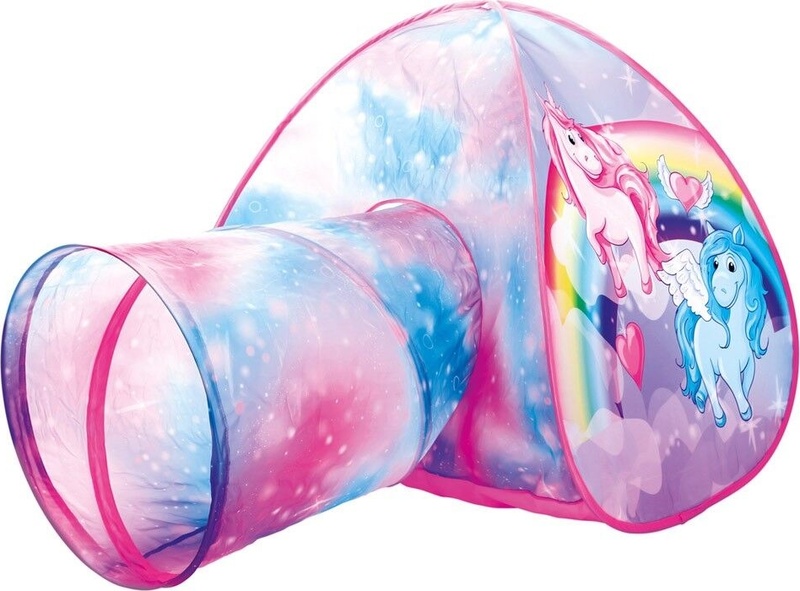 Skvelý farebný stan s tunelom s motívom jednorožca pre vaše aktívne deti.