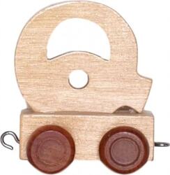 Drevený vágónik na kolieskach s písmenom Q.
