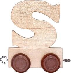 Drevený vágónik na kolieskach s písmenom S.