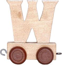 Drevený vágónik na kolieskach s písmenom W.