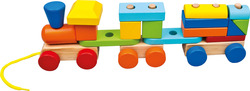 Drevený vláčik - ťahacia hračka, ktorá pomáha deťom s ich prvými krôčikmi a cvičením rovnováhy. Kocky sú navrhnuté tak, aby boli bezpečné a vhodné pre malé ručičky. Vďaka nim táto sada poskytuje nekonečne veľa zábavy so stavaním, riadením vlaku a učením poznávať veľkosti, postupnosť, protiklady (veľký/malý, hore/dole, doprava/doľava) a počítanie.