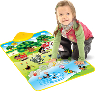 - Podložku možno prať v práčke na jemnom cykle v studenej vode a hračky sa dajú ľahko utierať vlhkou handričkou.