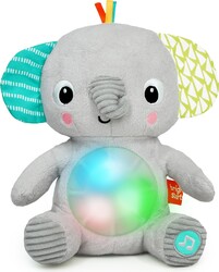 Tento mäkký plyšový sloník sa stane tým najlepším kamarátom vášho dieťatka. Mäkké plyšové zvieratko hrá viac ako 20 minút upokojujúce melódie a rozsvieti sa po jemnom stlačení nožičky. Prepínajte medzi dvoma režimami prehrávania buď nepretržitej hudby, alebo krátkych pesničiek. Sledujte, ako sa sloníkovo bruško mihá v rytme melódií! Vaše dieťa si zamiluje upokojujúcu žiaru bruška svojho nového kamaráta. Preskúmajte množstvo textúr, hrkálok a stužiek, ktoré podporujú rozvoj jemnej motoriky.
