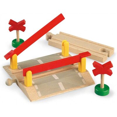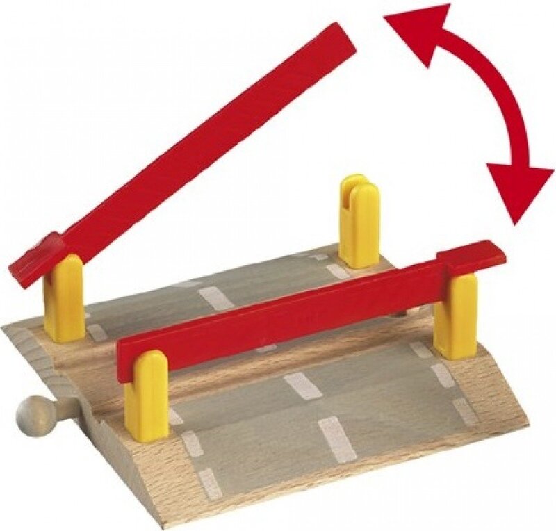 2 dvíhajúce závory, 1 koľaj, 2 výstražné značky. Tento doplnok je kompatibilný so všetkými vláčikodráhami Brio.