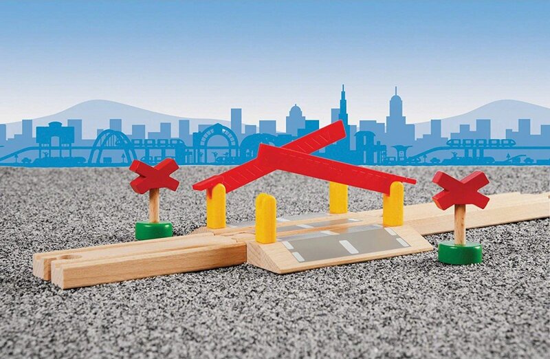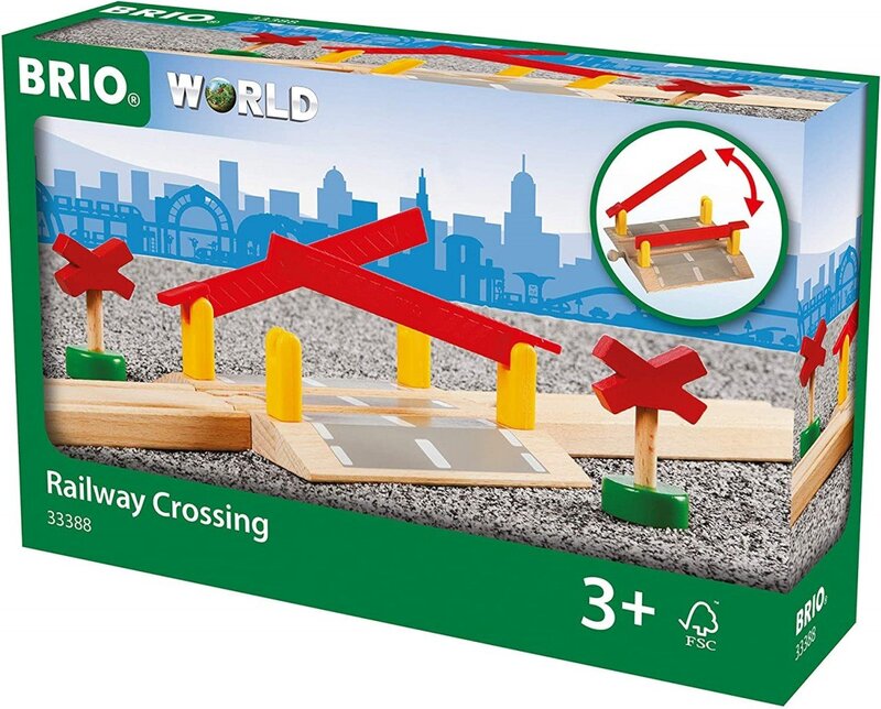 Brio Železničné priecestie so závoramiŽelezničné priecestie podporované dopravnými značkami prinesie možnosť križovať železnicu autami. Vďaka pohyblivým závorám dáte autu jasne najavo, že sa blíži rýchly osobný alebo ťažký nákladný vlak, ktorý zmetie každú prekážku.