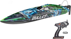 Ako strela vyrazí po vodnej hladine rýchlostný RC model člna na diaľkové ovládanie Bullet Brushless V4 2.4GHz . Dĺžka viac ako 70cm, striedavý vodou chladený motor BL2815 a regulátor 60A. RC súprava 2,4 GHz FHSS s prijímačom J2C91R. Nové atraktívne sfarbenie.