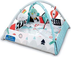 Mäkká detská podložka je špeciálne navrhnutá s kontrastnými bielymi a čiernymi farbami, aby stimulovala vizuálny vývoj počas prvých mesiacov dieťaťa. Obsahuje 4 závesné doplnky navrhnuté tak, aby podporovali zmyslové skúmanie: šustítko, pískatko a hrkálka stimulujú sluch a hmat, baví dieťa tým, že upúta jeho pozornosť. Okraje podložky je možné zdvihnúť, aby sa dieťa mohlo hrať v úplnom bezpečí. Boky sú zdobené kontrastnými ikonami, ktoré priťahujú pohľad dojčiat.