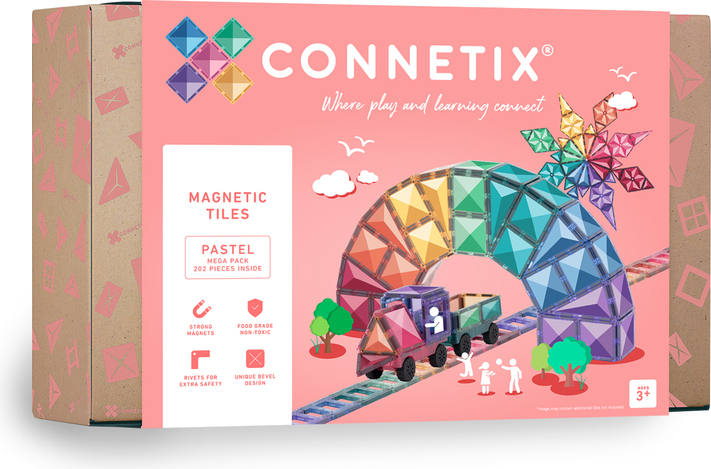 Mega balíček Pastel možno použiť mnohými rôznymi spôsobmi a naprieč mnohými vekovými kategóriami a schopnosťami, pričom hra sa stáva zložitejšou, ako postupuje vývoj a/alebo záujmy dieťaťa. Tento štýl hry sa hodí na skupinovú aktivitu, ktorá spája ľudí všetkých vekových kategórií a schopností, či už s rodinou, priateľmi alebo vo vzdelávacom prostredí. Ako kvalitná hračka s neobmedzenými možnosťami, bude CONNETIX rásť S vaším dieťaťom, ako sa učí a jeho hra sa stáva zložitejšou. Rozšírte svoju kolekciu a posuňte zábavu s magnetickými dielikmi na vyššiu úroveň s naším jedinečným 40-dielikovým Geometrickým balíčkom Pastel!
