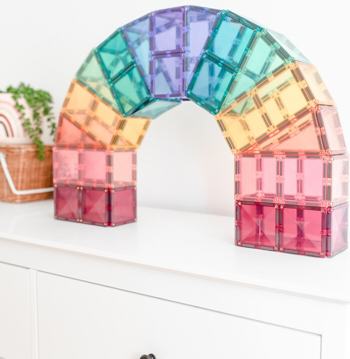 Tento balíček, ktorý obsahuje všetky naše štandardné tvary dielikov v 8 jedinečných pastelových farbách Zeme PLUS dve základne áut, je dokonalou možnosťou na naštartovanie alebo rozšírenie vašej kolekcie magnetických dielikov. Rozšírte škálu farieb, ktoré deti poznajú, o naše odtiene: ružovú (rose), lesné plody (berry), broskyňovú (peach), mätovú (mint), smaragdovú (emerald), citrónovú (lemon), fialovú (violet) a zafírovú (sapphire). S rôznymi tvarmi, vrátane veľkých a malých štvorcov a radu geometrických trojuholníkov, umožňuje Mega balíček Pastel deťom navrhovať, stavať a vytvárať 2D a 3D tvary na základe ich záujmov a schopností.