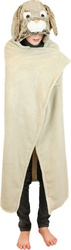 Zábavná, mäkučká, hrejivá deka s kapucňou s motívom zvieratka a dvoma rohovými vreckami na ruke s motívom zvieracích labiek.