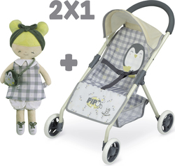 DeCuevas 90547 Športový kočík pre bábiky a plyšová bábika PIPO 2022 - 55 cm