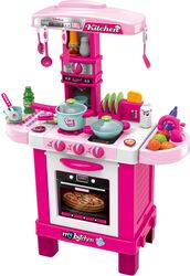 Veľká detská kuchynka so svietiacimi svetlami a realistickými zvukmi urobí z vašeho dievčatka naozajstnú gazdinku. Napájanie tromi 1,5V batériami typu AA. Batérie nie sú súčasťou balenia. Určené pre deti od 3 rokov.