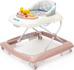 Multimediálny panel obsahuje rôzne svetelné efekty, trúbiaci volant, ktorým možno otáčať, tlačidlá pre prehrávanie melódií a dve svetlá. Krásne chodítko s hračkami očarí malých objaviteľov a umožní im hrať sa ešte dlhšie. Chodítko je vybavené špeciálnym systémom proti prevráteniu, ktorý zaistí Vášmu dieťaťu pohodlie a bezpečnosť.