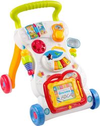 Chodítko má telefón, ktorý vydá klikacie zvuky a môžeme ho demontovať a podať dieťaťu. Ďalej, krásnu farebnú knižečku, v ktorej dieťa môže otočiť stránku, tabuľu na ktorú môže písať a vymazávať svoje dielka. Tabuľu možno tiež demontovať. Ďalšou časťou chodítka je mini piáno, na ktoré môže dieťa hrať a púšťať si zvuky a rôzne melódie, svetielka v tvare hviezdičky a mesiačika a po bokoch chodítka sú hračky a zrkadielko.