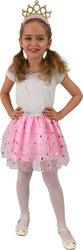 - Nadýchaná tylová suknička ružovej farby s potlačou koruniek má dĺžku cca 30 cm.