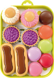 Tácka s rôznymi chutnými sušienkami a cupcake-mi.