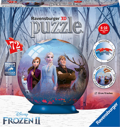 3D puzzle puzzleball Frozen. Puzzleball sa skladá zo 72 kusov plastových dielikov, ktoré po zložení tvoria guľu, ktorá sa dá na podstavec (súčasťou balenia).