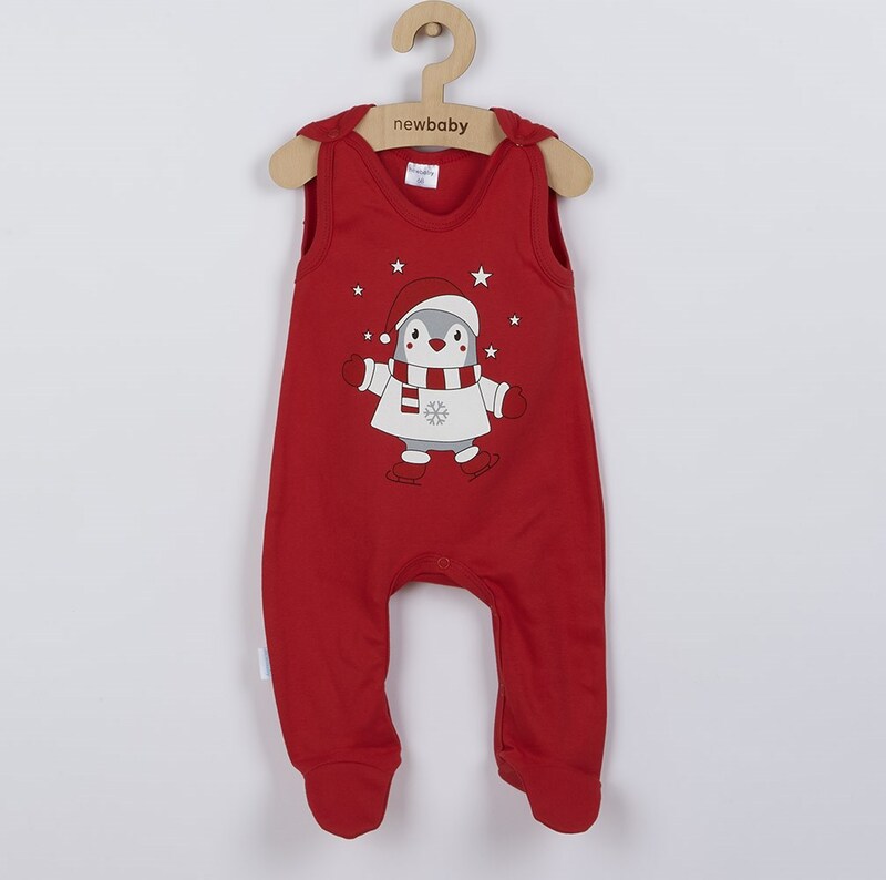 Bavlnené dojčenské dupačky New Baby Winter Penguin. Dupačky sú v krásnej červenej farbe a sú zdobené roztomilým a veselým tučniačikom. Zapínanie na cvočky na ramienkach a medzi nožičkami uľahčuje obliekanie a prebaľovanie bábätka. Naše dupačky sú vhodné pre chlapcov aj dievčatká a s roztomilým zimným motívom, budú pri vianočnom stromčeku neodolateľné.