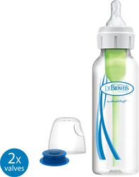 S Dr.Brown´s súpravou uľahčite prechod pitia z fľašky na pitie z pohárika cez náustok. Z dieťatkom obľúbenej a jemu známej fľašky jednoducho vyberte vnútorný ventil a vymeňte cumlík za mäkký náustok. Je to prvý krok k pitiu z pohárika s náustkom. Bez BPA.